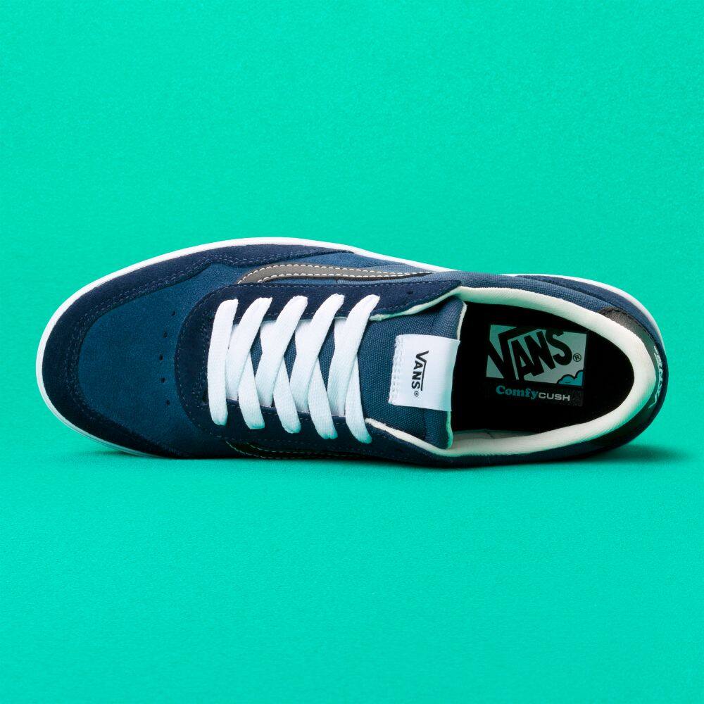 The Toned Cruze Too ComfyCush is a classic low top, lace-up silhouette featuring sturdy suede and textile uppers with the iconic Vans sidestripe. The Toned Cruze Too ComfyCush also includes padded collars, Wafflecup construction, and new drop-in sockliners for maximum comfort.